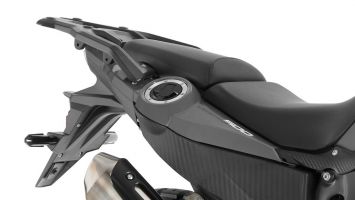 190 Kilogramm soll die Rieju Aventura 500 Legend wiegen. Allerdings trocken, also ohne Sprit. Und genau an dieser Stelle hat Rieju eine Besonderheit zu bieten: Die Aventura 500 Legend hat zwei Benzintanks. Einen mit 20 Litern Volumen vorn und zusätzlich einen mit 19 Litern Volumen am Heck. In Summe ergeben sich somit 39 Liter Tankvolumen sowie bis zu 1.000 Kilometer Reichweite, ausgehend von circa 4 Liter Spritverbrauch pro 100 Kilometer wie vom 500er-Honda-Motor bekannt. Das ist wirklich Adventure-würdig, sogar herausragend, und allgemein für Motorradverhältnisse sensationell. Rieju sagt sogar nur 2,9 Liter Spritverbrauch pro 100 Kilometer an, womit sich deutlich über 1.000 Kilometer Reichweite ergeben würden – doch das muss erst noch bewiesen werden.