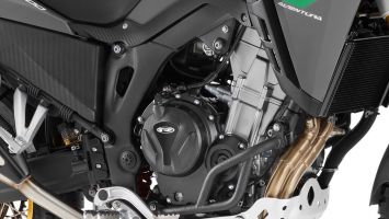 Kleiner Unterschied: Während Honda für Bohrung und Hub 67 x 66,8 Millimeter und für den Hubraum 471 Kubik nennt, stehen in den Daten zur Rieju Aventura 500 Legend 67 x 68,8 Millimeter, demnach 2 Millimeter längerer Hub. Damit ergeben sich 485 Kubik, also 14 Kubik mehr als bei Honda. Damit leistet der Twin in der Rieju-Konfiguration locker 48 PS (35 kW) bei 8.500/min, passend zur europäischen Stufenführerscheinkategorie A2. Standard ist das Sechsganggetriebe, komplette Eckdaten des Antriebs hat Rieju noch nicht genannt.